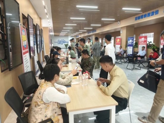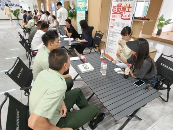 招聘会现场气氛活跃,退役士兵们精神抖擞,积极与企业代表交流沟通,充分展现自身优势与潜力。多家企业展位前排起长队,双方在互动中探寻合作可能。