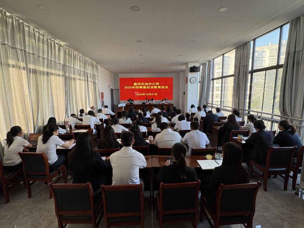 10月21日,普洱石油分公司召开2025年四季度纪法教育会议,公司领导班子成员及机关各部门全体人员参会。