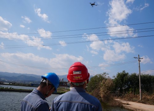 工作人员开展无人机智能飞巡,保障线路安全稳定运行。